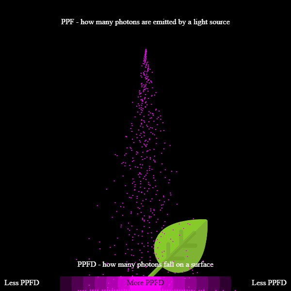 In our graphic below, each dot represents a single photosynthetic photon. PPFD
